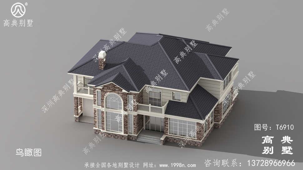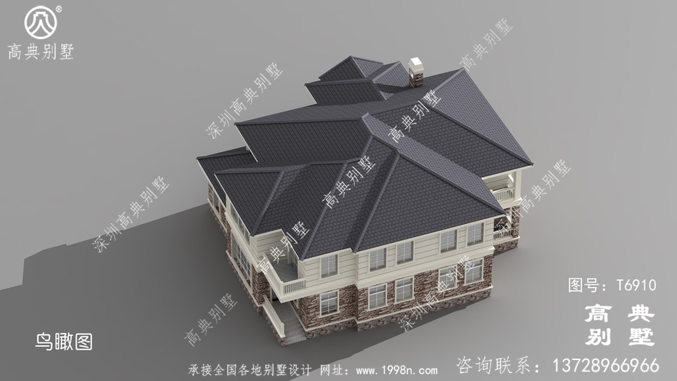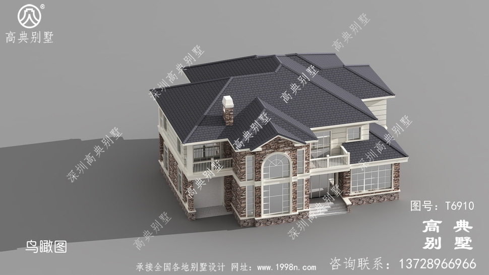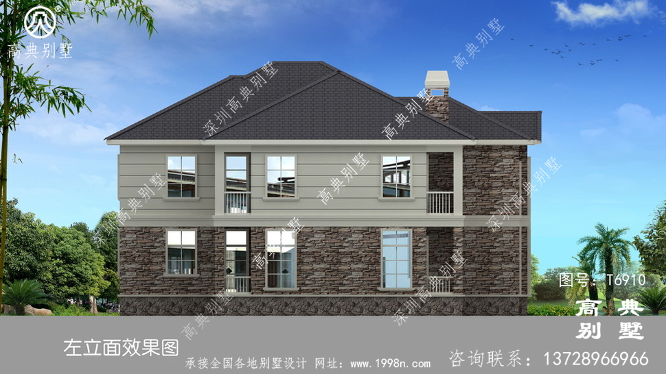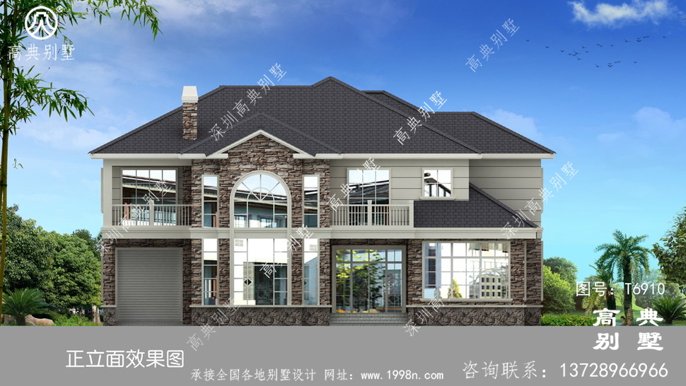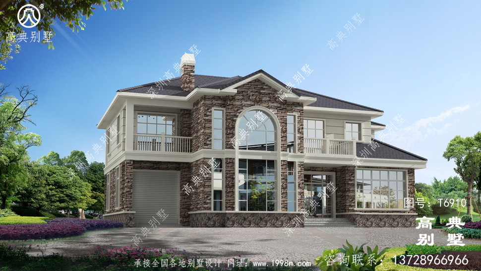此别墅外墙主要材料:外墙涂料、屋面水泥平板瓦、实木栏杆、外墙文化石