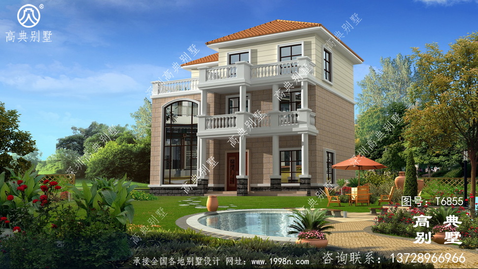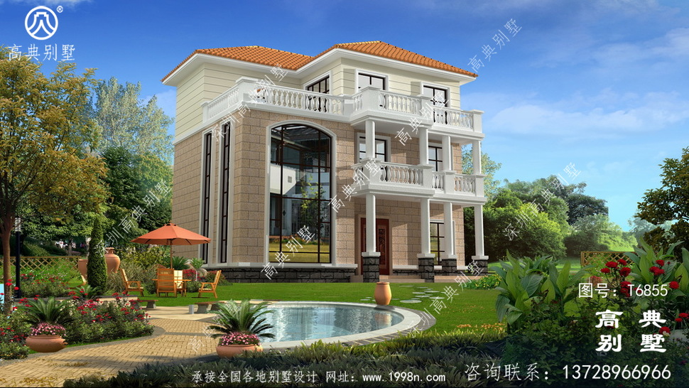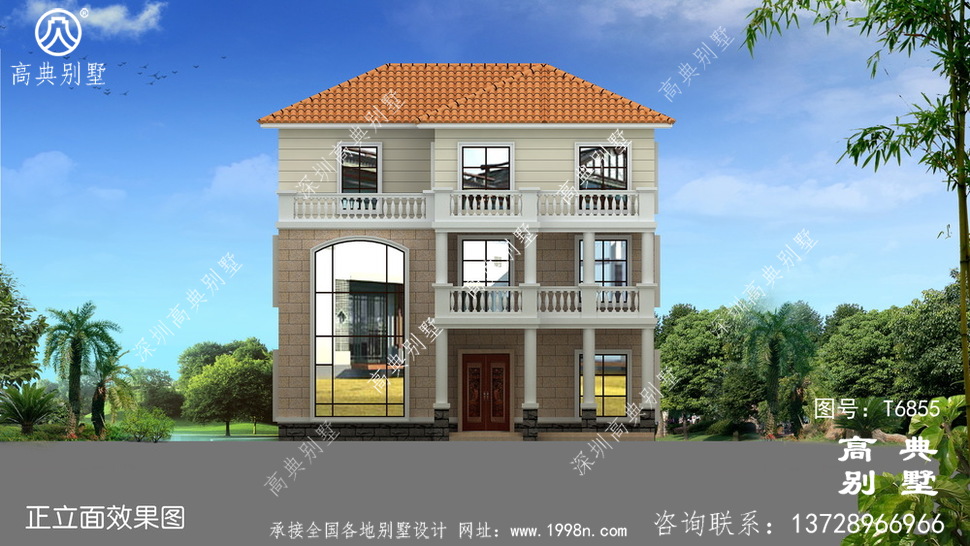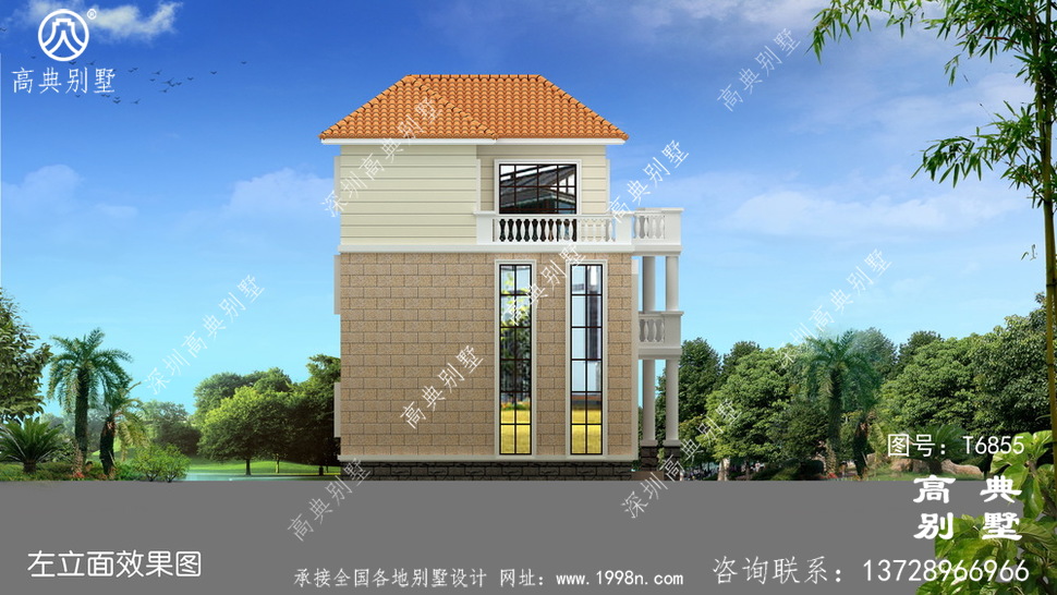 【T6855号别墅设计图纸】高清版别墅外观效果图请看下面网址