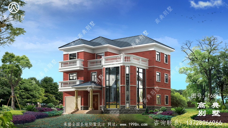 本套图纸提供一张外墙使用红色劈开砖效果图参考