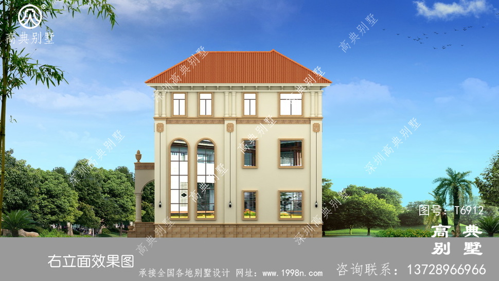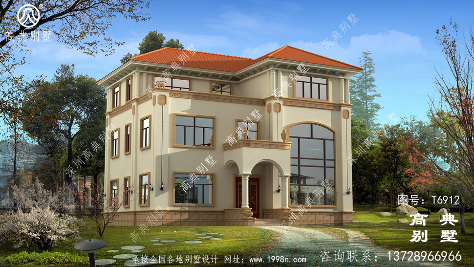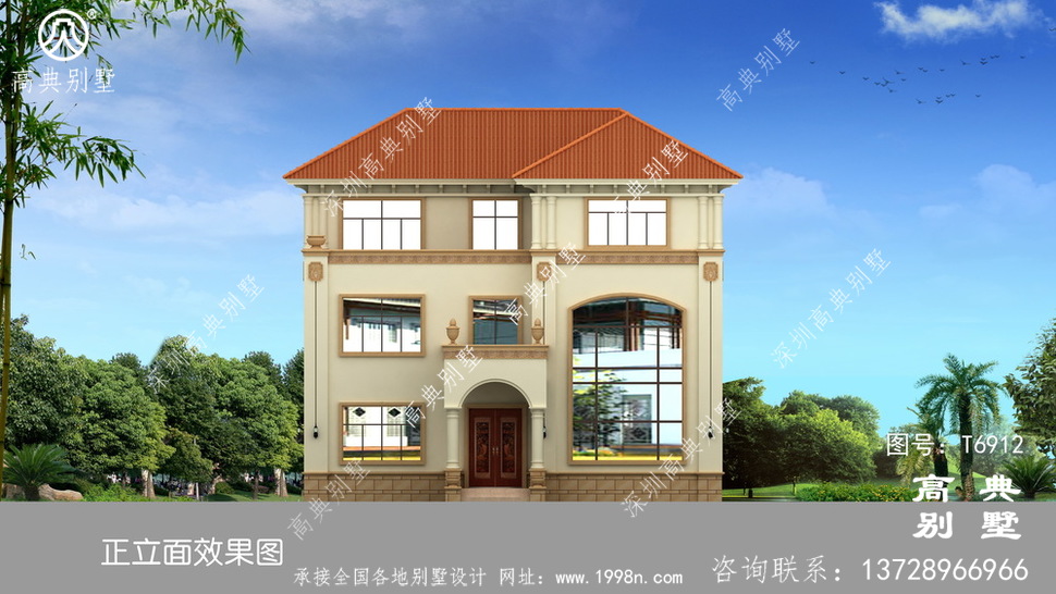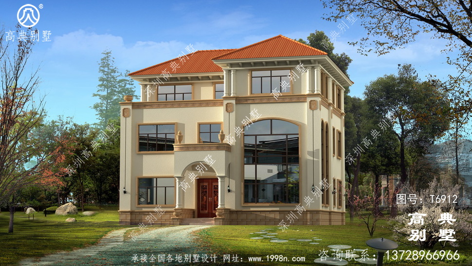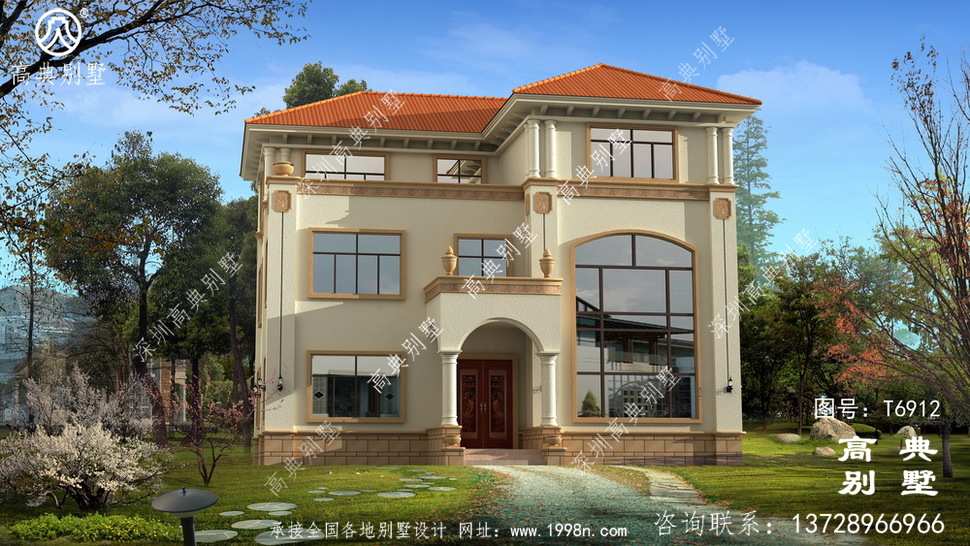 简单大气的欧式三层别墅外观效果图,农村自建首选