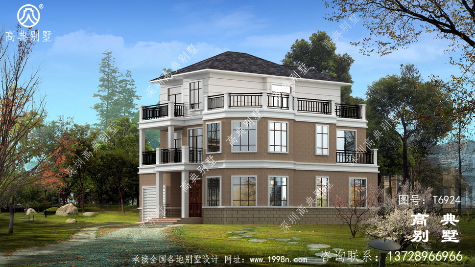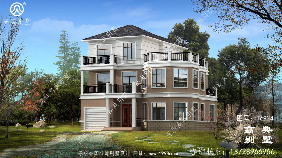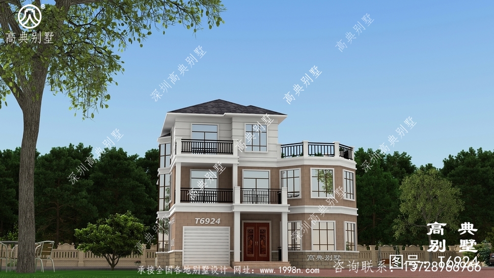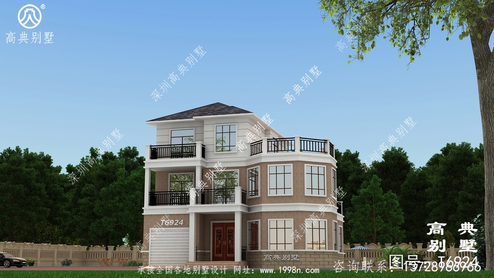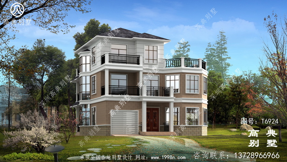 >> 欧式三层别墅设计图纸带车库和大露台(含外观效果图)