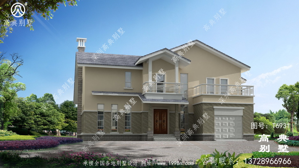 最符合农村的欧式两层别墅设计图,带烟囱和车库