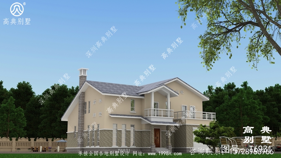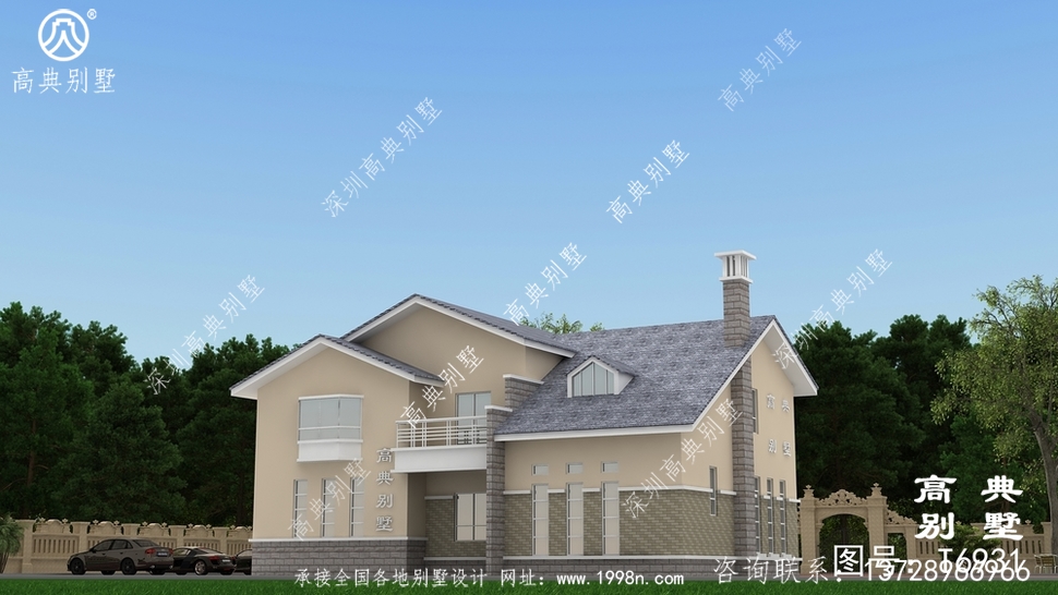 >> 最符合农村的欧式两层别墅设计图,带烟囱和车库