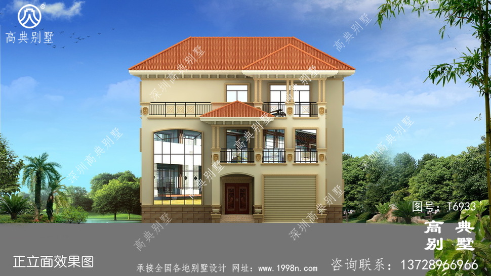农村自建人气颇高的欧式三层别墅设计图纸,落地窗配车库