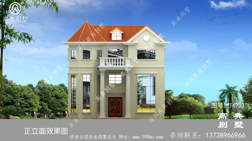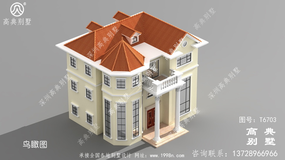 此别墅外墙主要材料:天然岩石漆、310X310 S瓦、GRC水泥构件