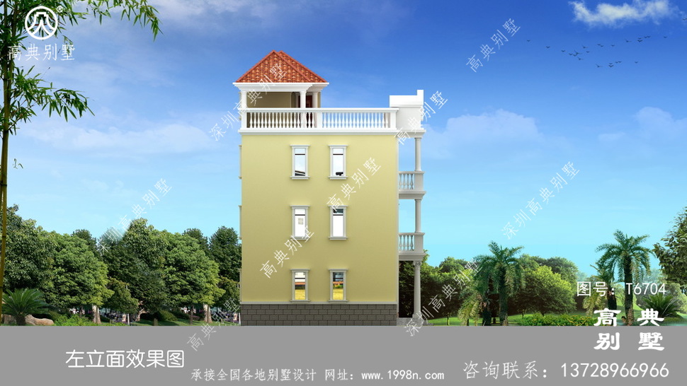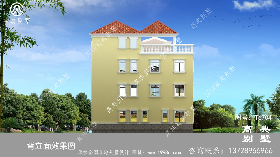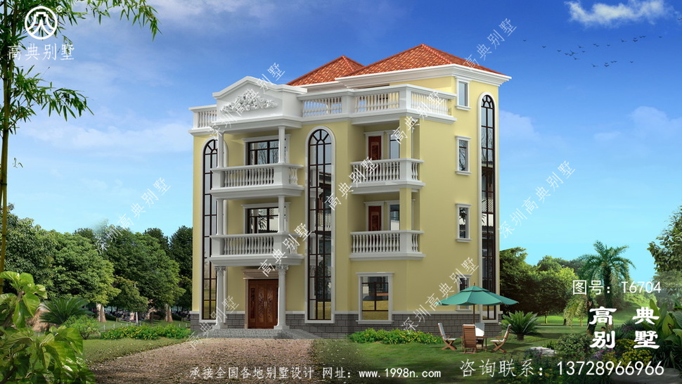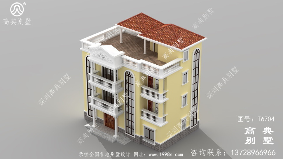 豪华屋顶大露台的欧式四层农村别墅外观效果图,大气奢华