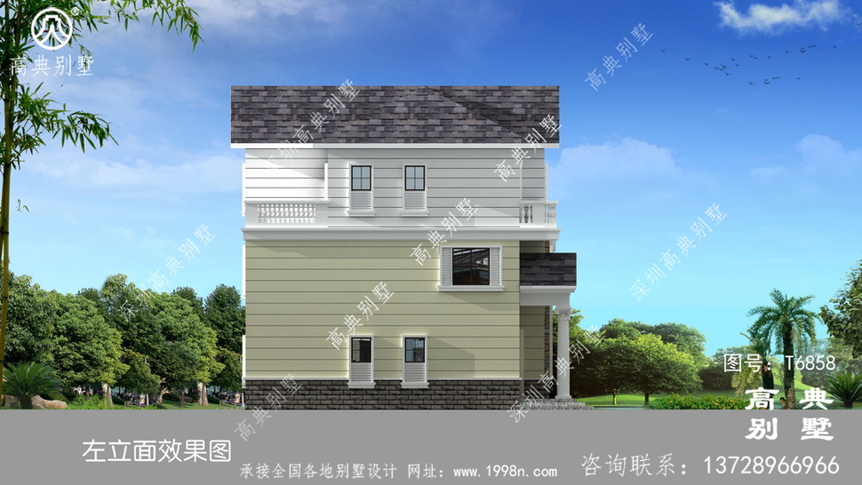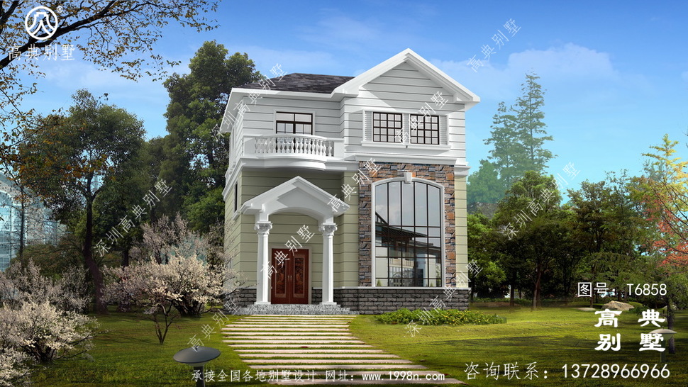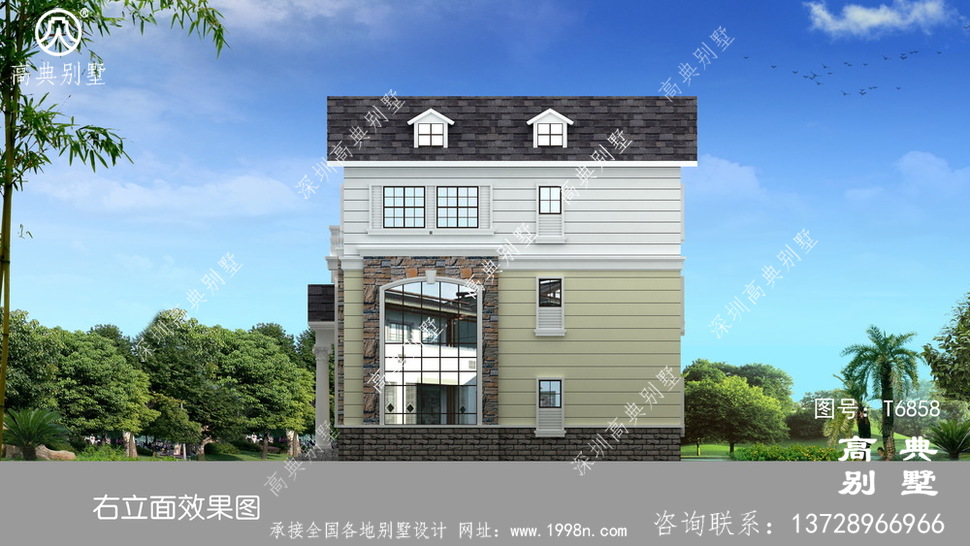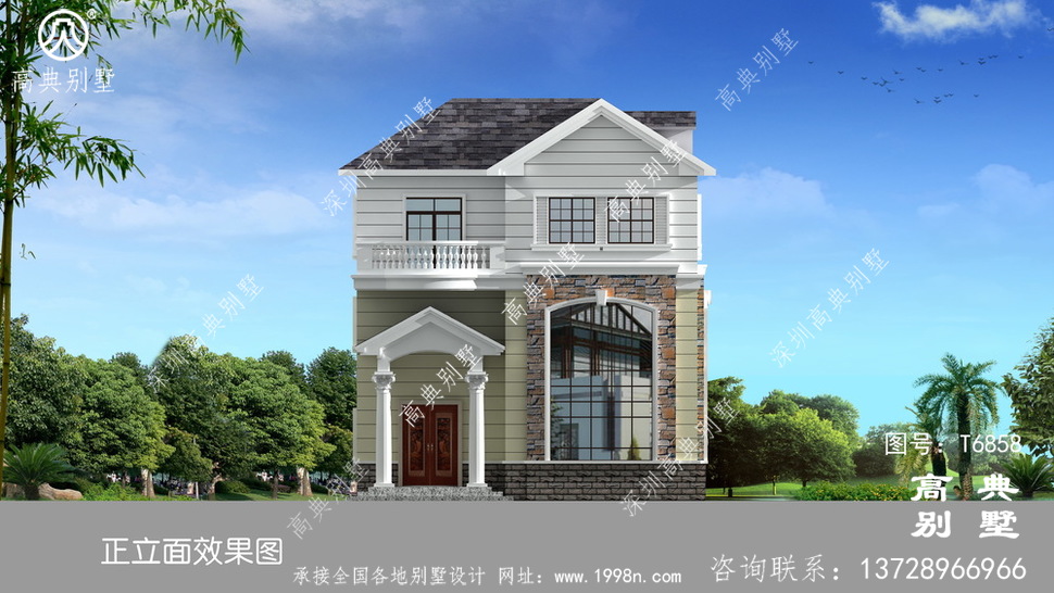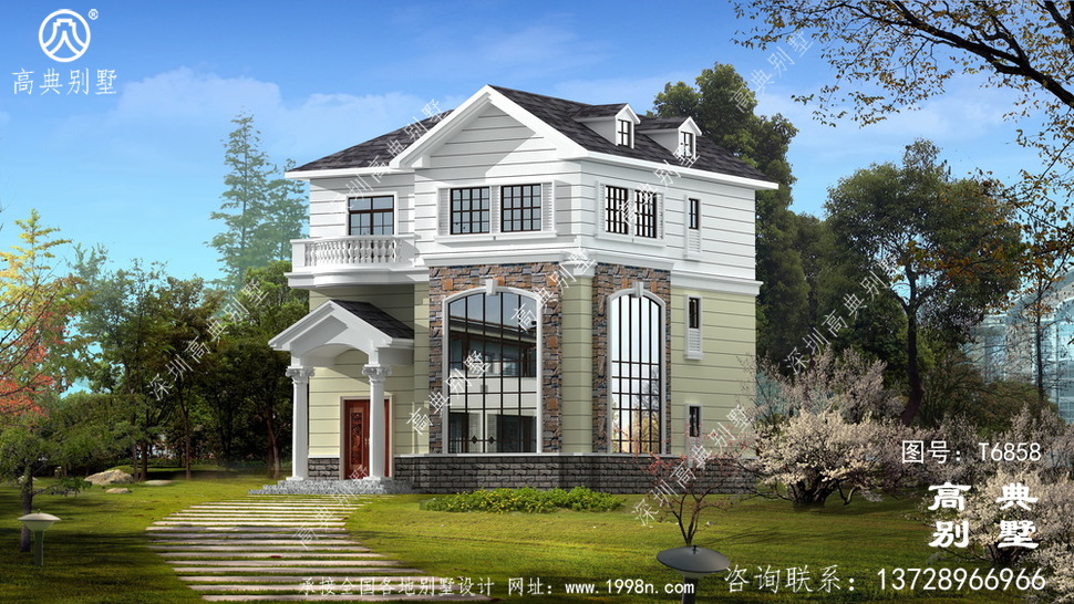 美式三层别墅设计外观效果图,占地134平方米,清新秀丽