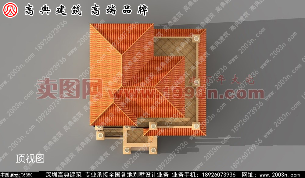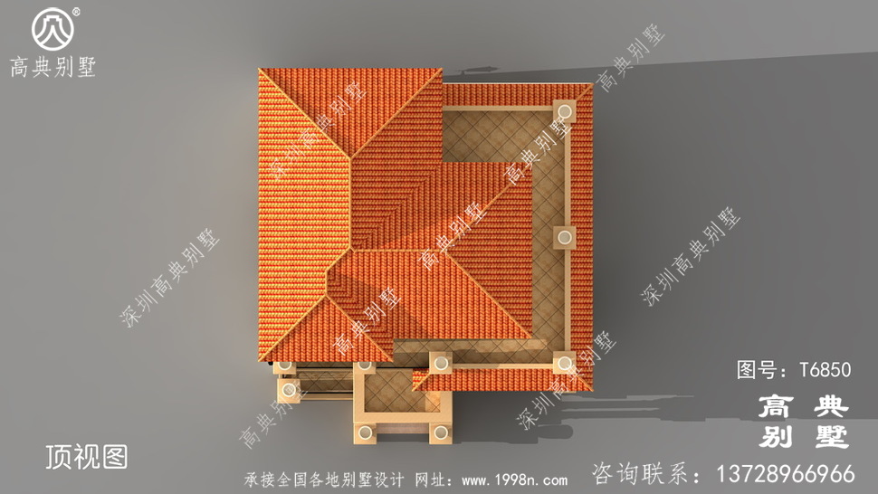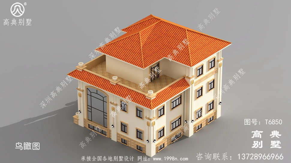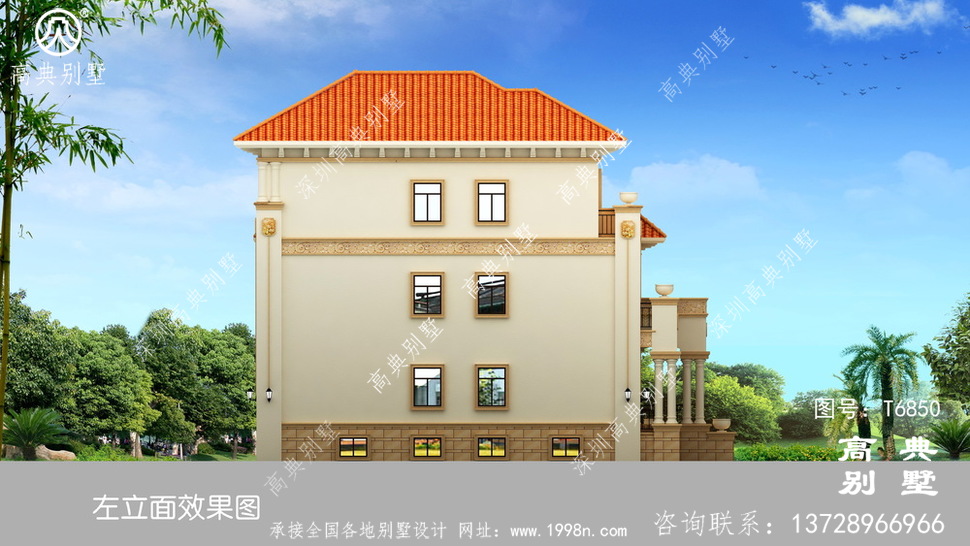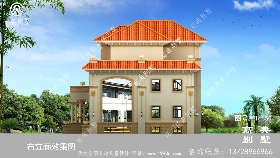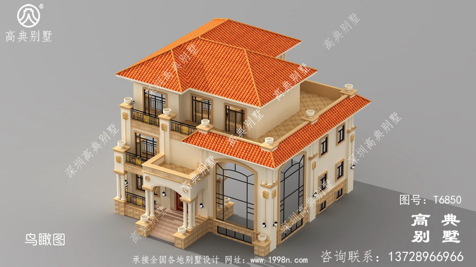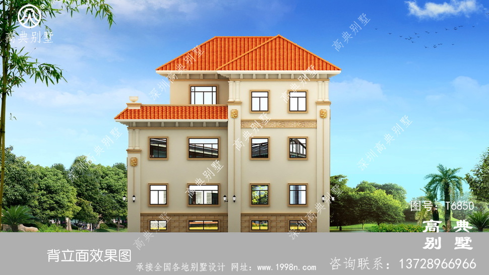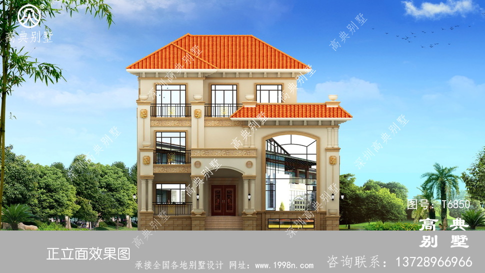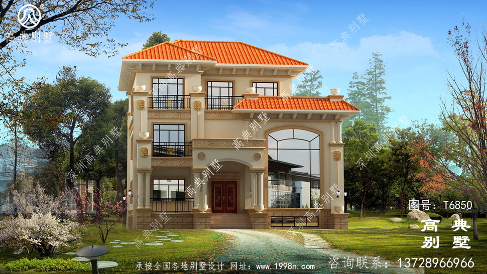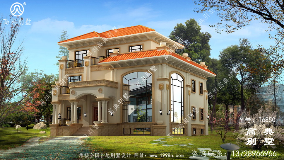 此别墅外墙主要材料:外墙涂料、GRC水泥构件、西瓦、砂岩石