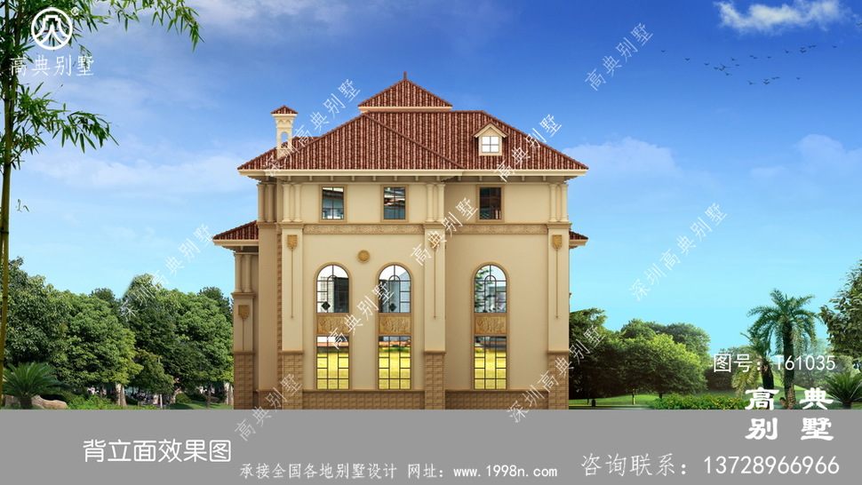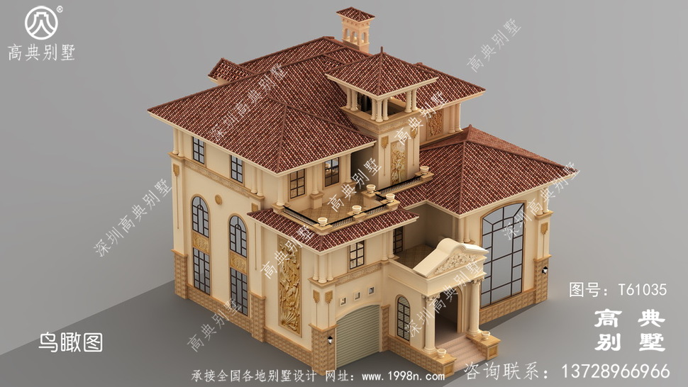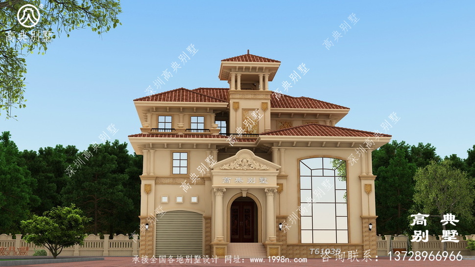 >> 屋顶带观景台的欧式三层别墅设计效果图含施工图