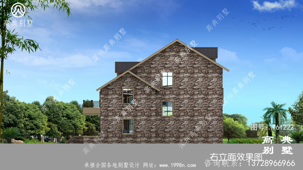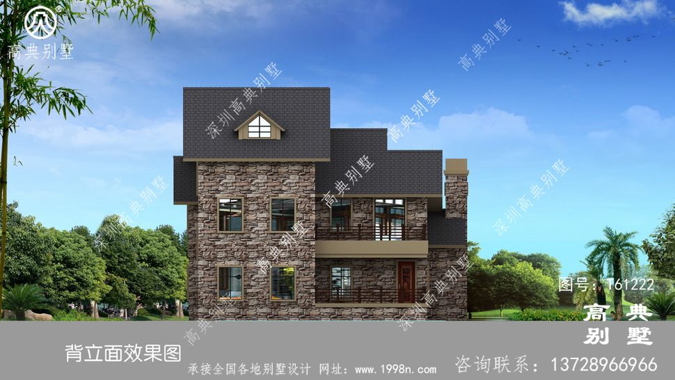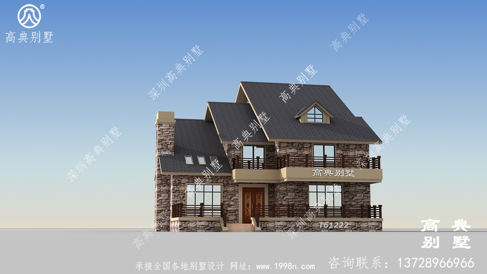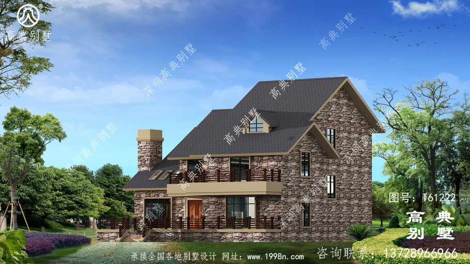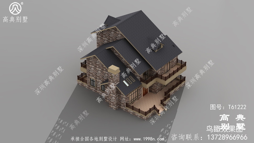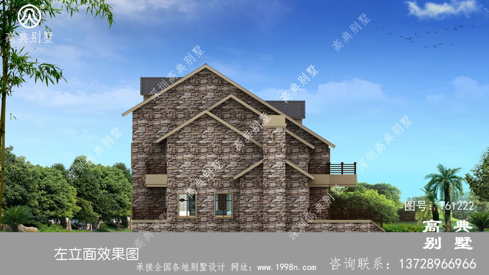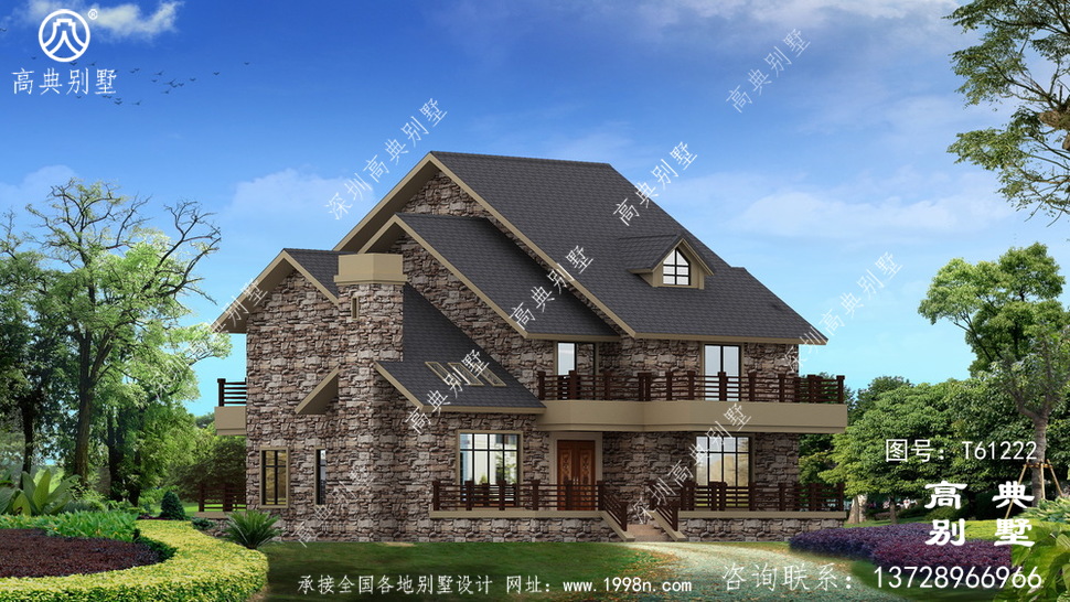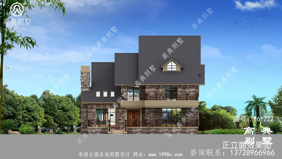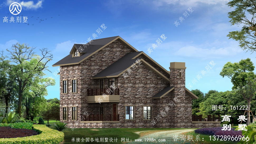 此别墅外墙主要材料:外墙真石漆、外墙文化石、屋面玻纤瓦