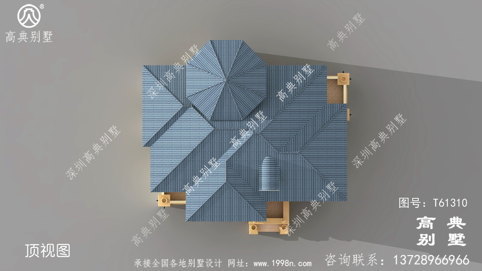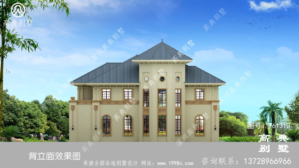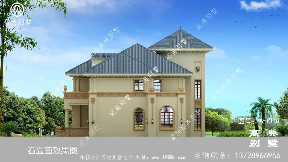 此别墅外墙主要材料:外墙涂料、GRC水泥构件、西瓦、砂岩石、砂岩石浮雕