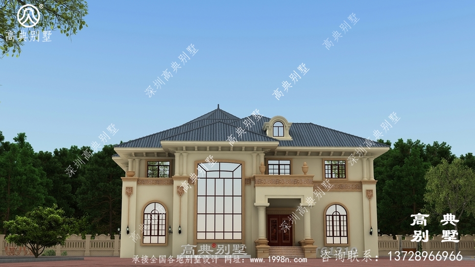 新农村自建两层欧式别墅效果图建筑时尚典雅,外观精美,内部布局极佳。