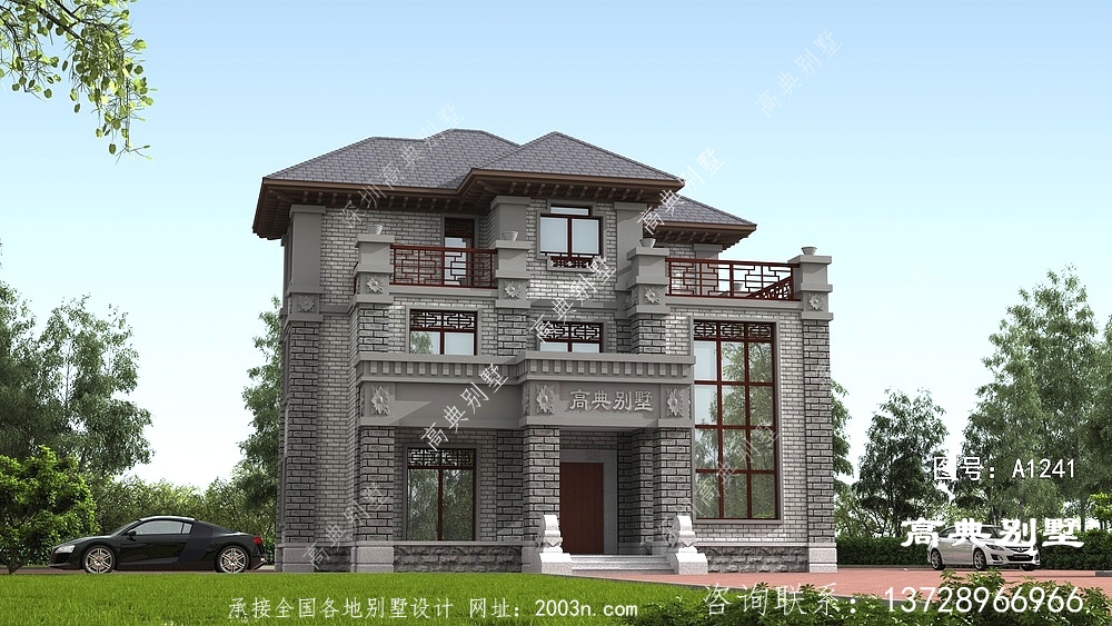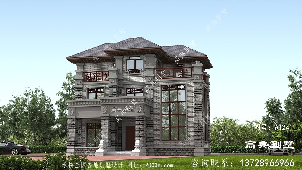 中式别墅怎么建的新颖不老气,当然是配上复式落地窗啦