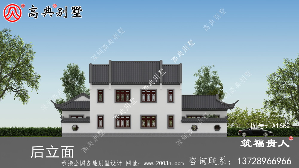 A1662号别墅外墙主要材料:麻石、真石漆、仿古小青瓦
