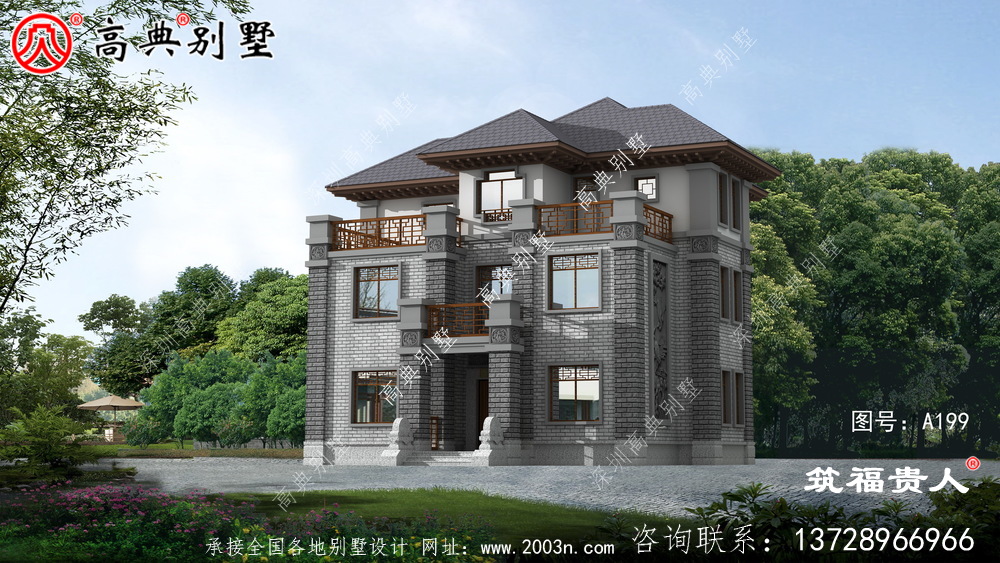 新中式三层建造房屋设计图。 轻松舒适的乡村给乡村带来了独特的美,自建别墅无疑给简朴的乡村生活增添了一些美丽的色彩,给自己带来了一个休息和定居的家园。建造漂亮的房子是一个人一生中必须实现的美好愿景。
