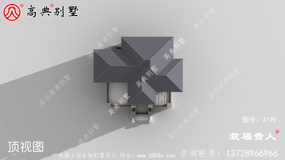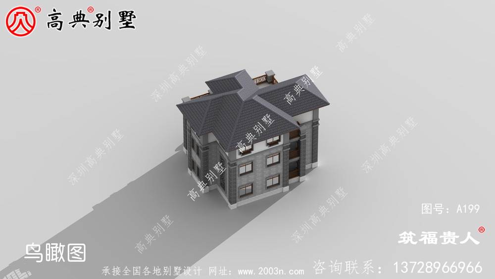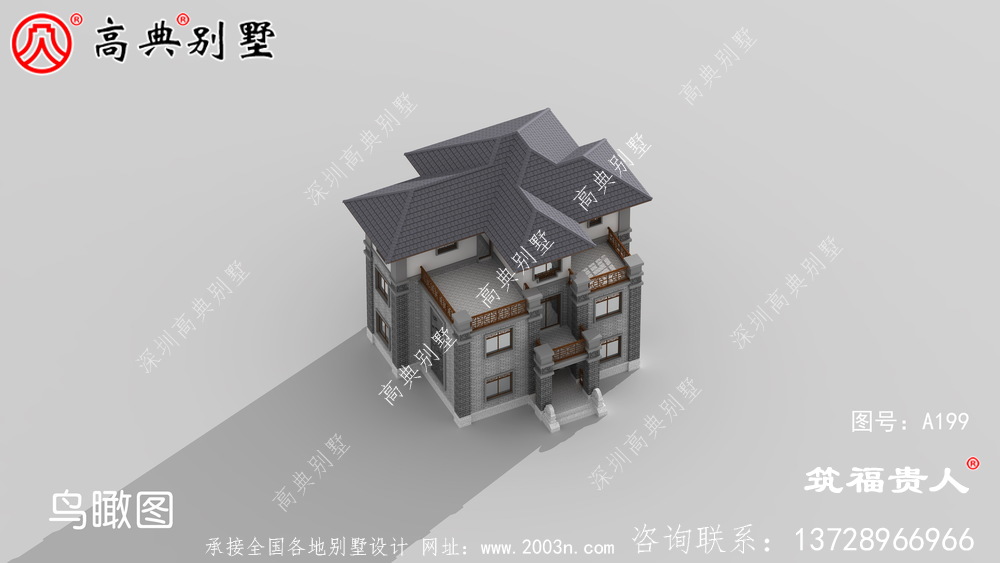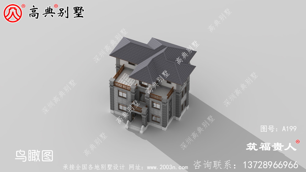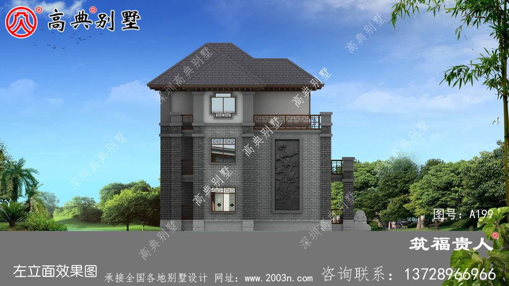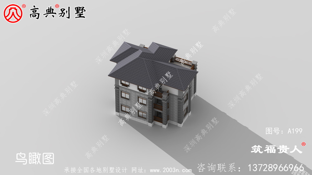 A199号别墅外墙主要材料: 水泥平板瓦、面砖、真石漆 、麻石