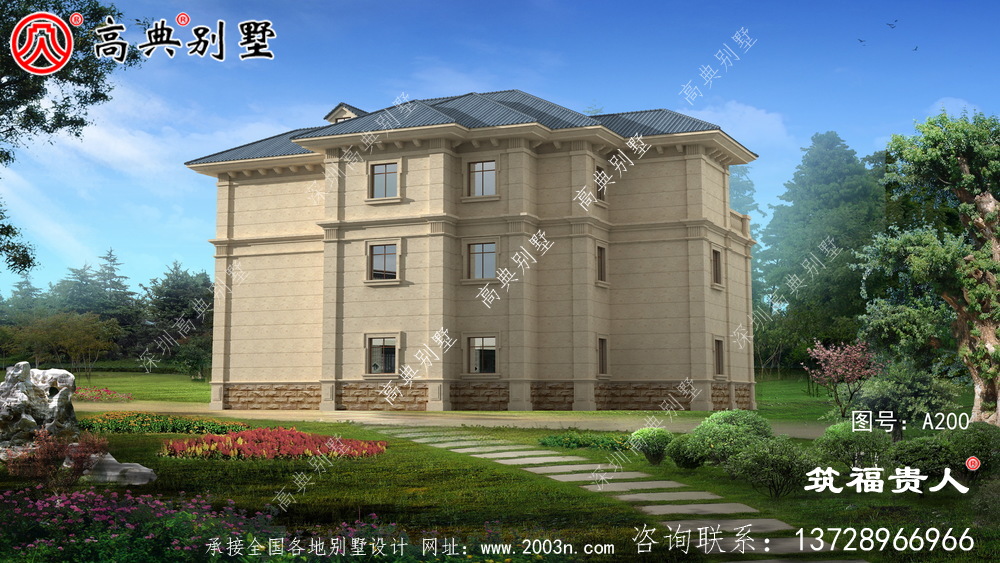 欧式三层自建住宅设计,石材别墅。最理想的生活是在大城市奋斗,在一个小城市的广阔天地里建造一座小别墅。它不需要太大。它只需要明亮的家居灯光、绿草、红花、树篱、浪漫的房子、内心的宁静、日出和日落。
