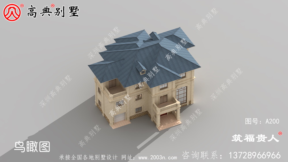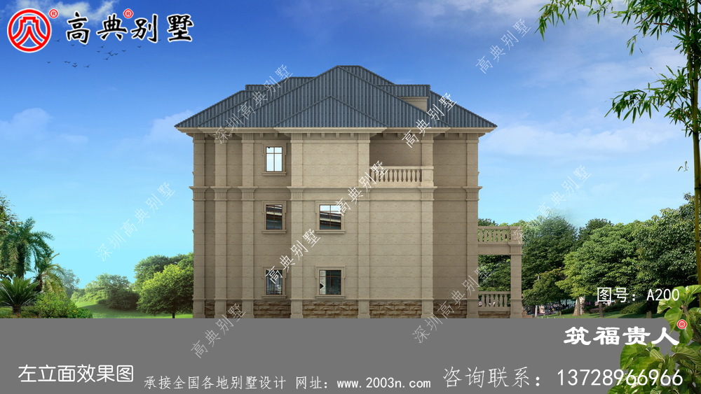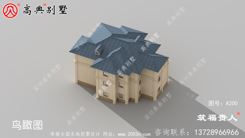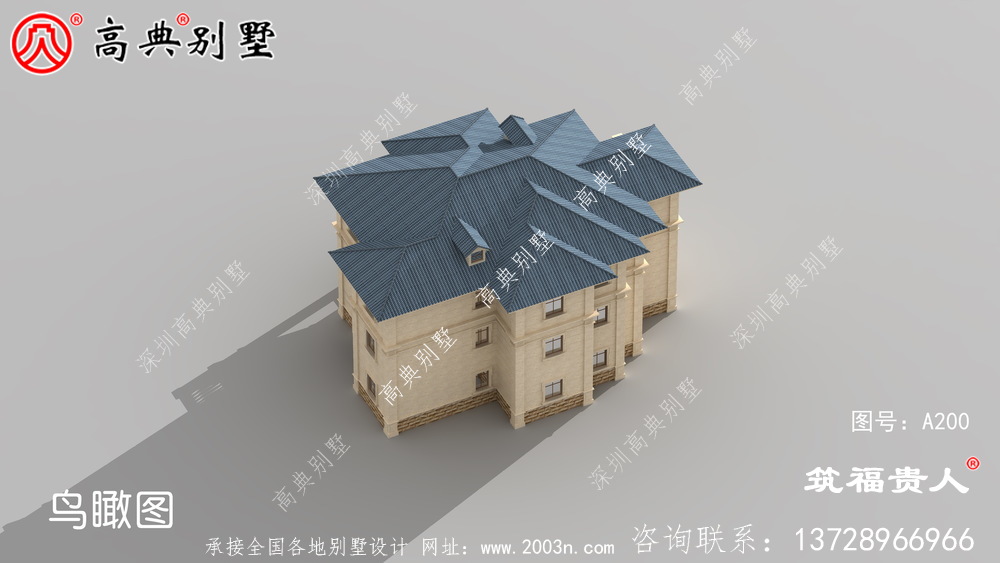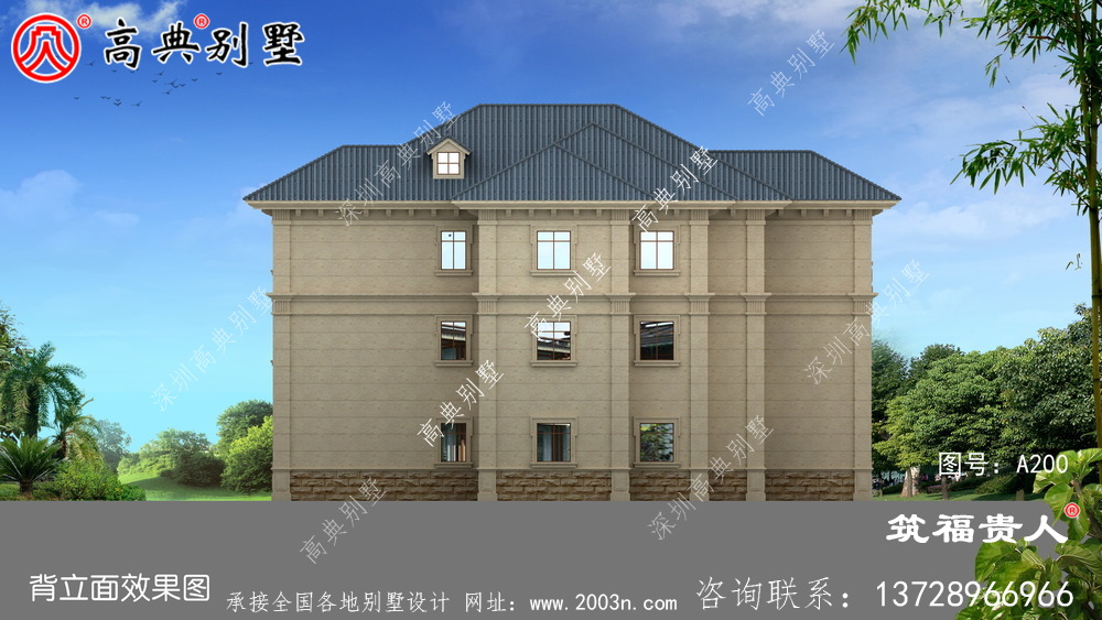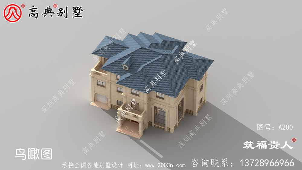 A200号别墅外墙主要材料:外墙纯石材干挂设计别墅、 外墙西班牙米黄石材、屋面310X310S瓦