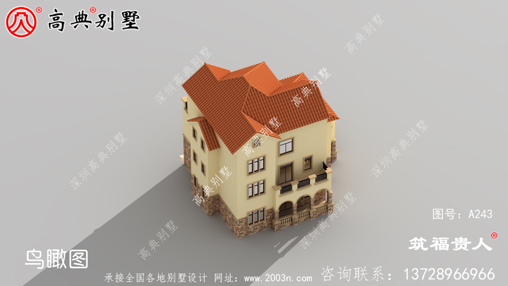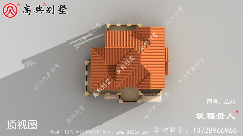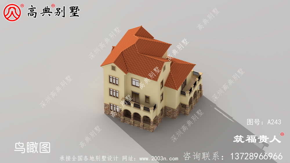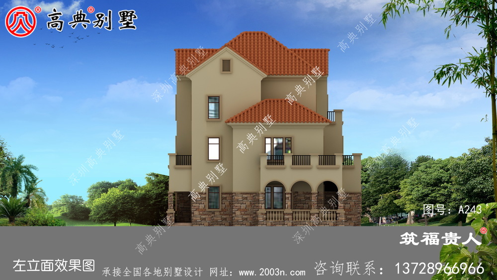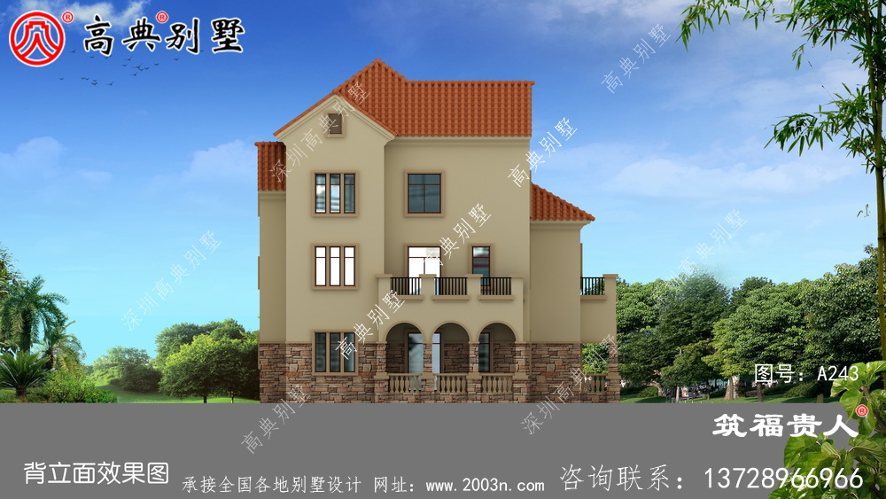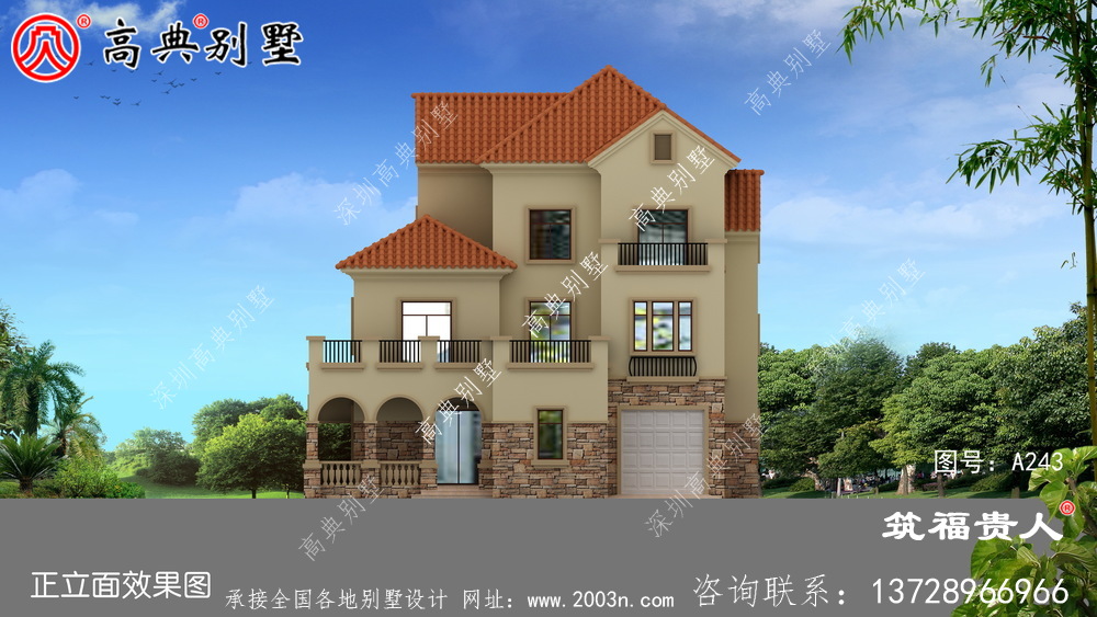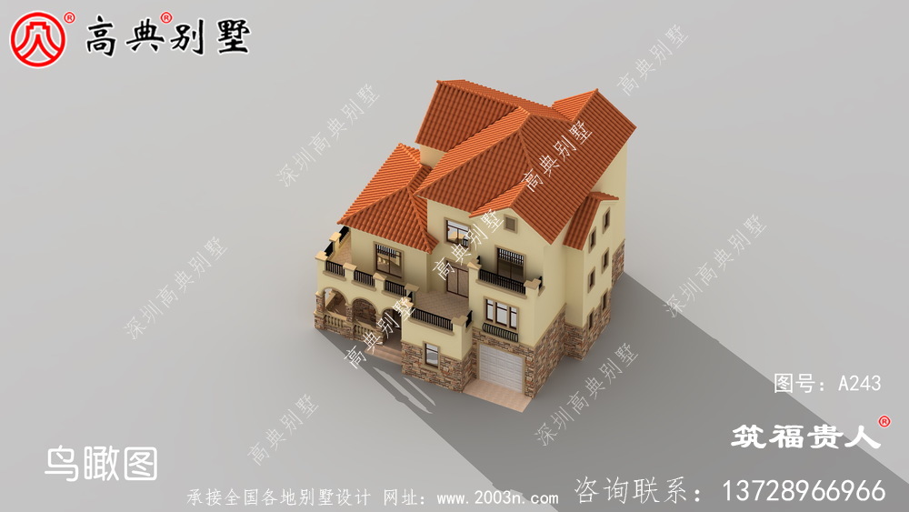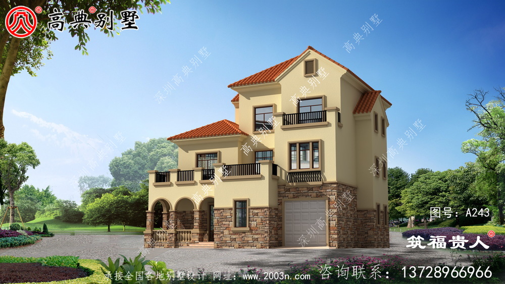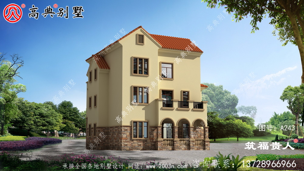 A243号别墅外墙主要材料: 筒瓦、真石漆、外墙文化石