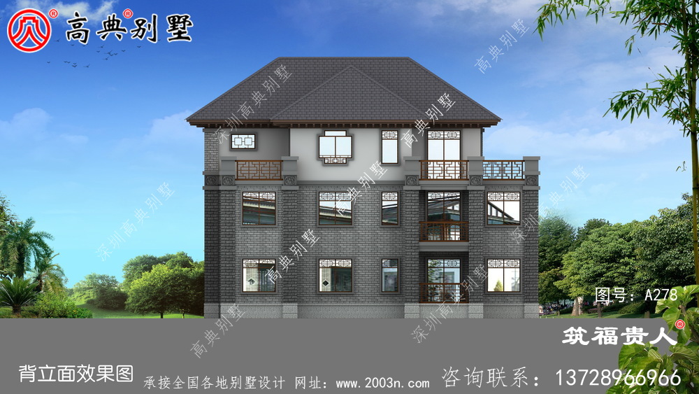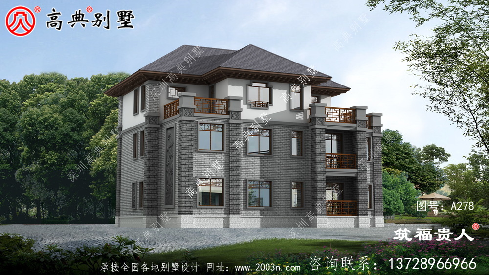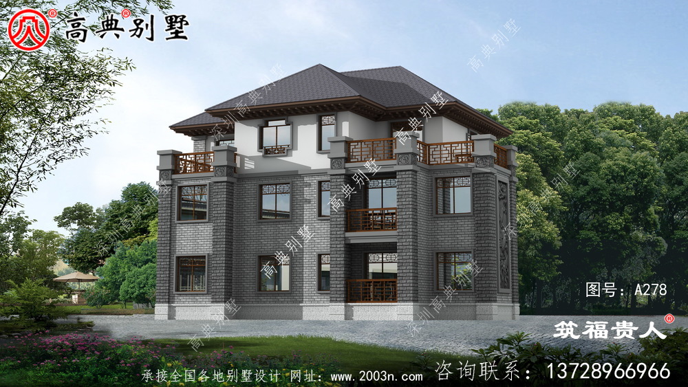 新中式三层别墅设计图,美观大方精美,光照优良