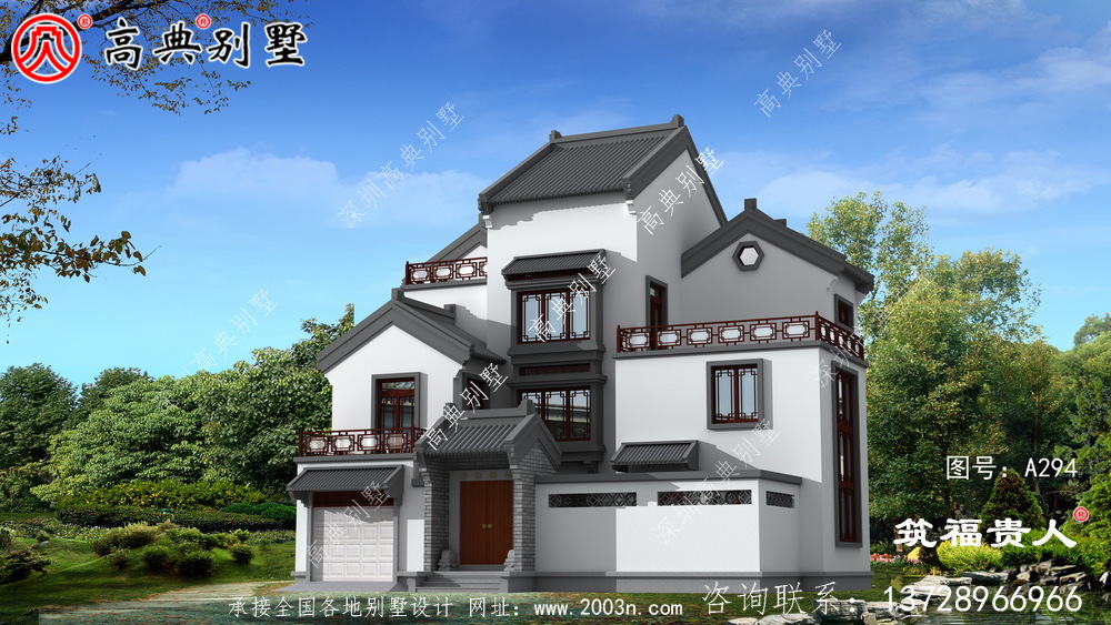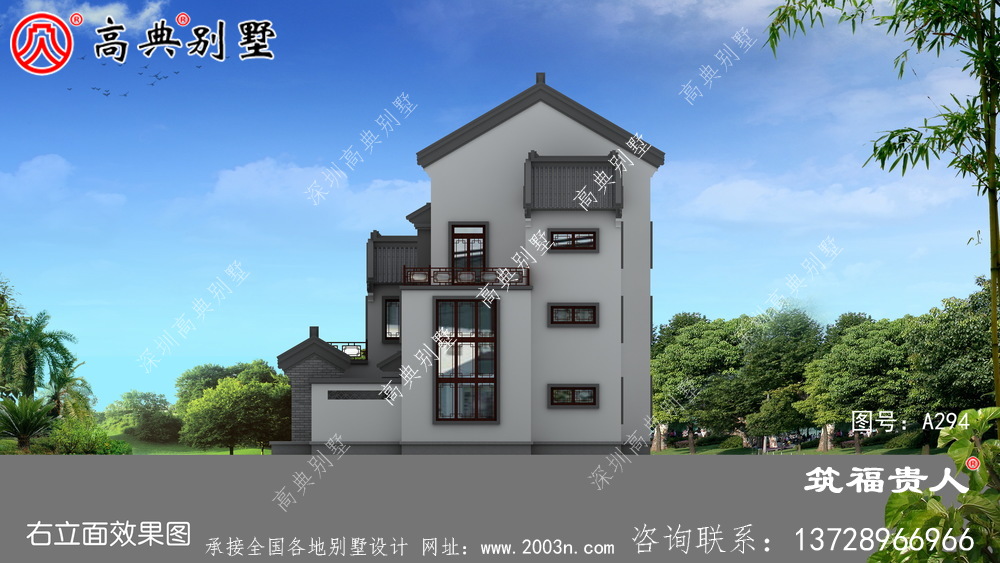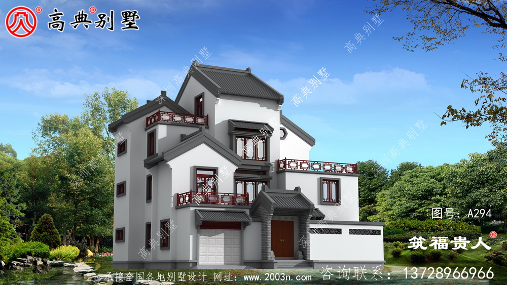 A294号别墅外墙主要材料: 真石漆、仿古青砖、水泥仿古青瓦