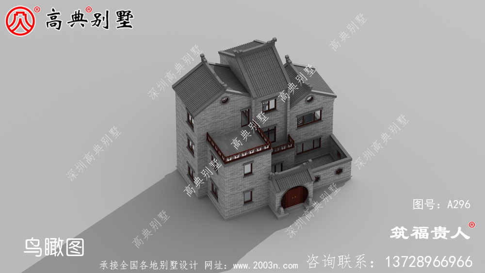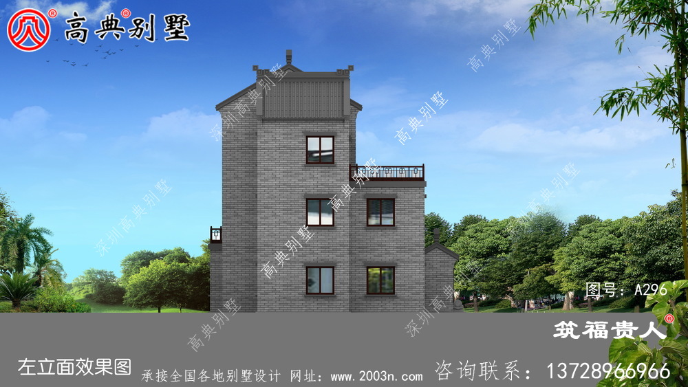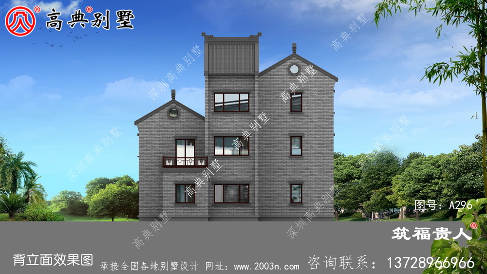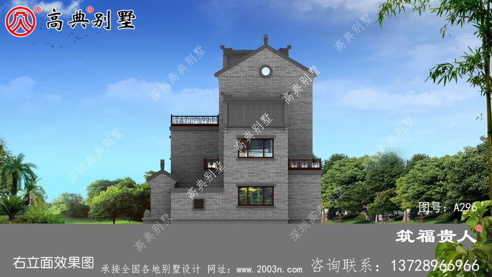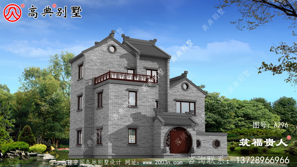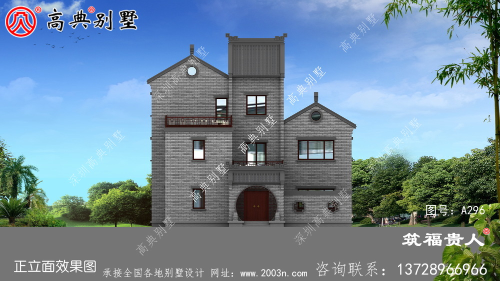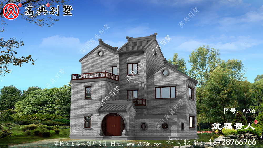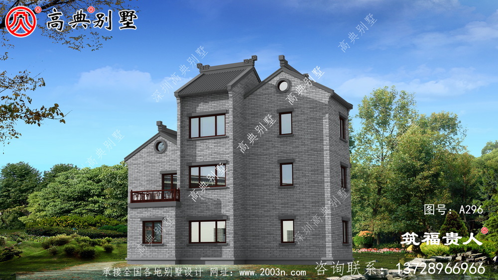A296号别墅外墙主要材料: 真石漆、仿古青砖、水泥仿古青瓦