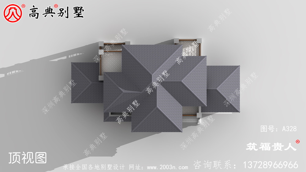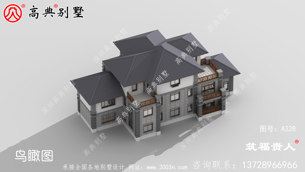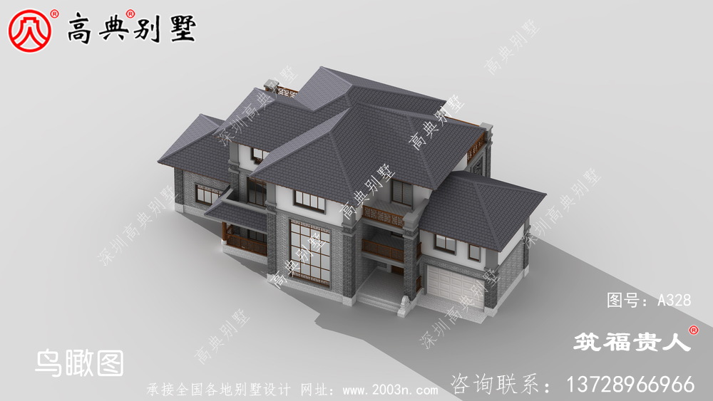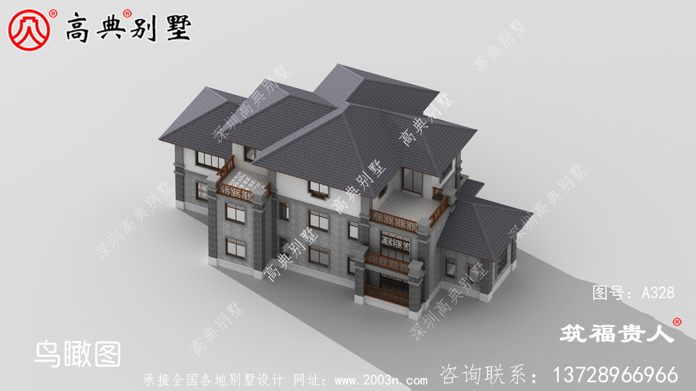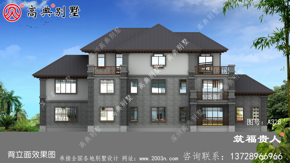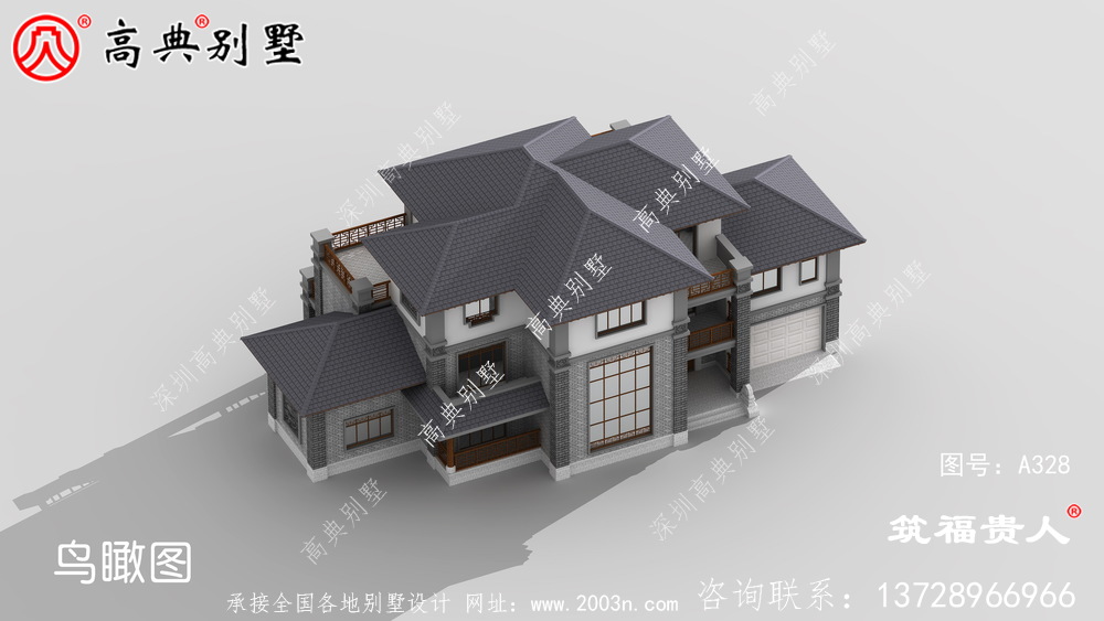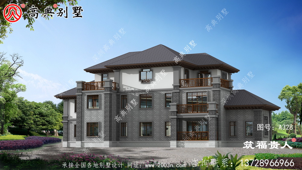 此别墅外墙主要材料:水泥平板瓦、真石漆、仿古青砖、麻石