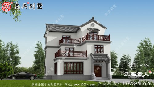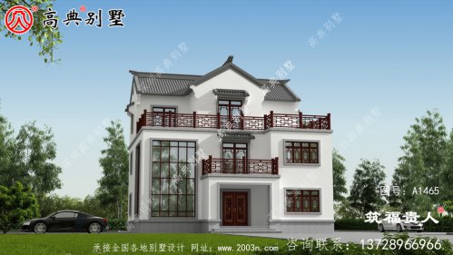 经济实用的中式三层别墅。盖农村房子一定要以使用为主。 毕竟房子是一辈子的事情,如果花钱建造它不实用,居住不实用,钱花了,容易引起家庭矛盾。 A1465号别墅设计图纸及效果图